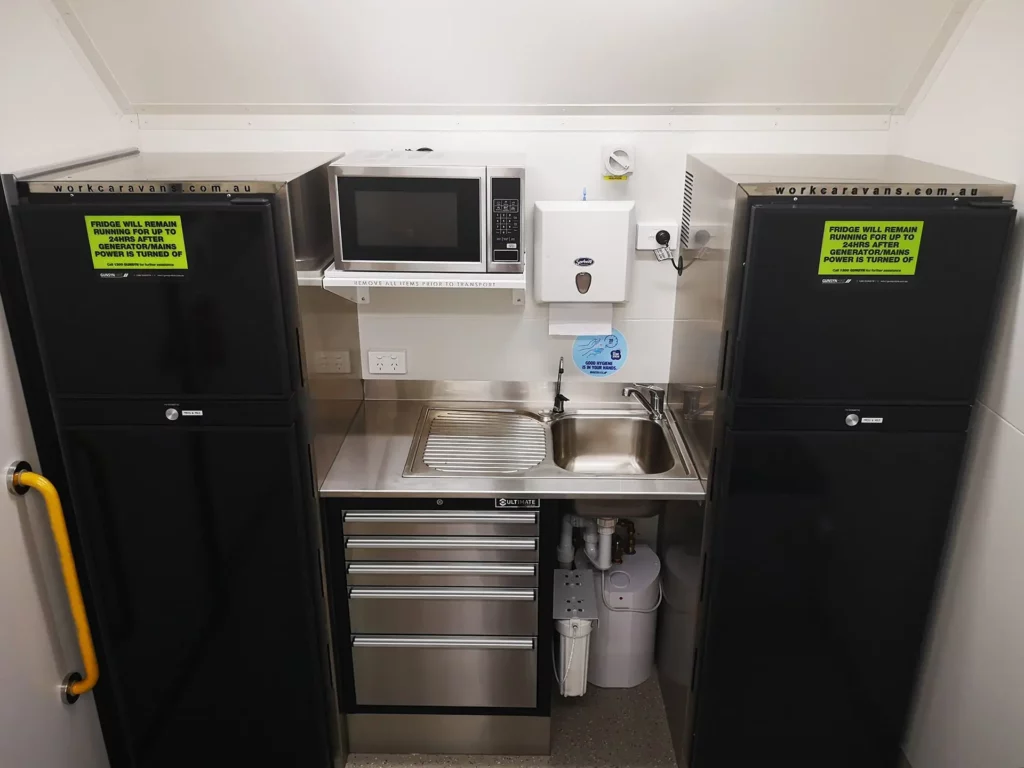 Gunsyn Hire’s mobile site caravans are fully engineered for Australia’s harsh conditions and are fully mobile. This means that your manpower is not spent in setup and you don’t need electricians or plumbers to connect – simply park and use.